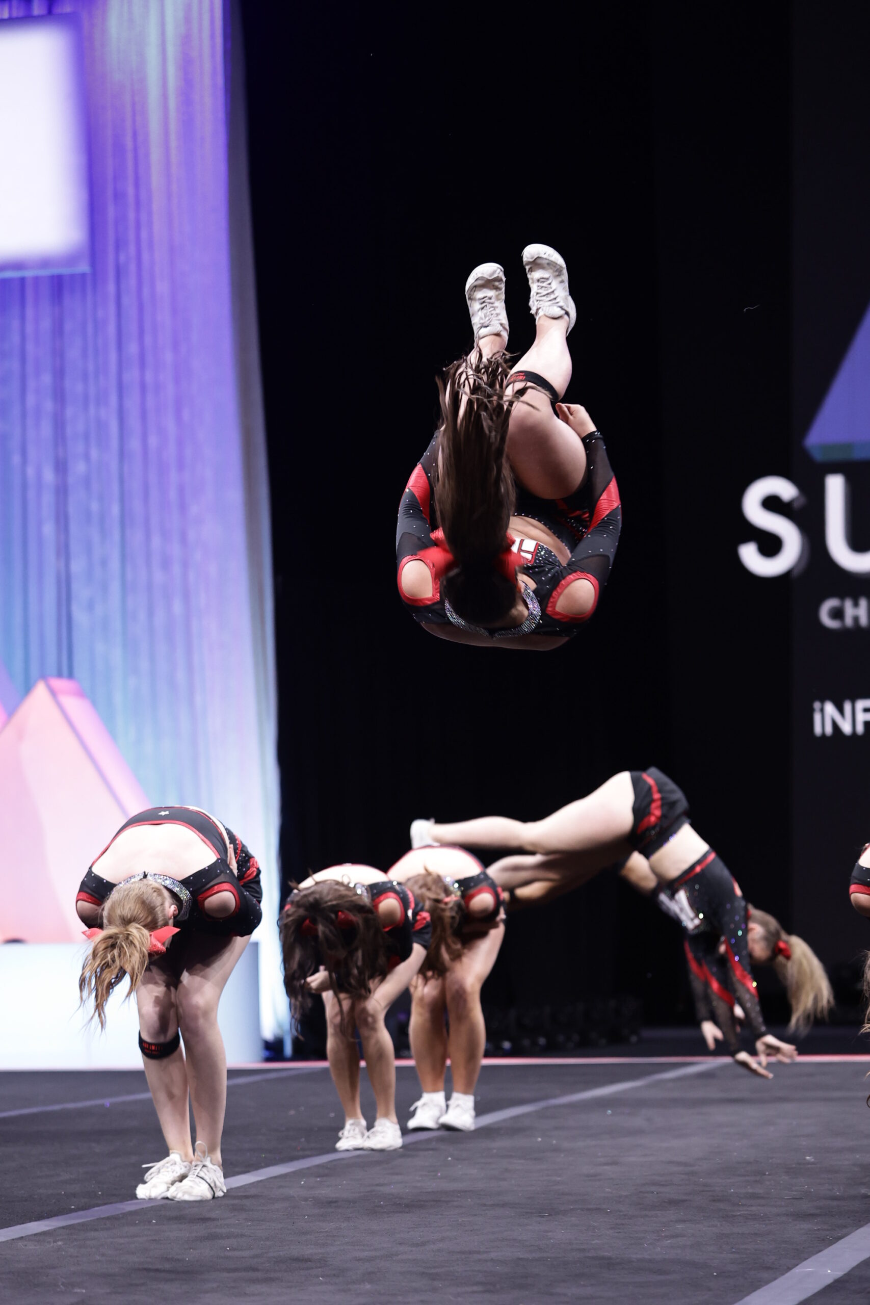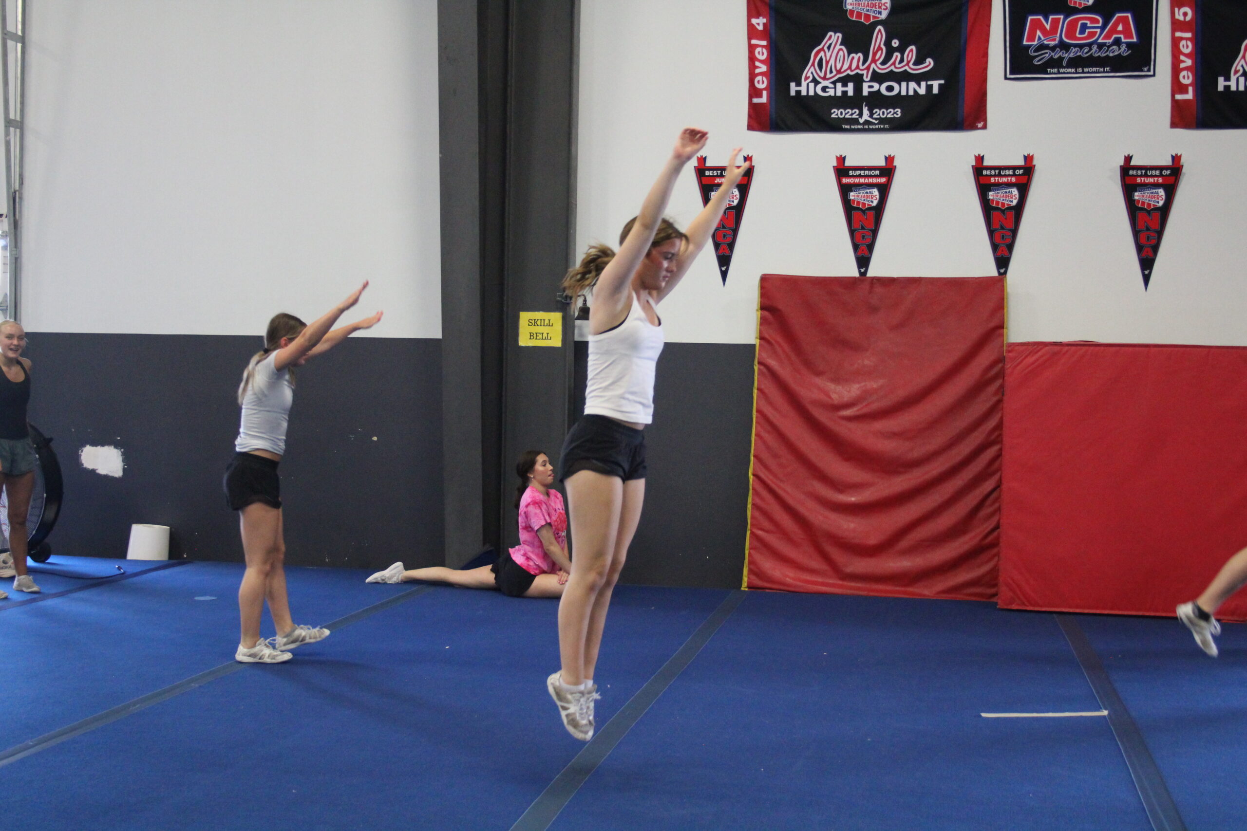 Through structured drills and progressions, coaches help athletes safely learn how to generate height and rotation while maintaining clean execution. The addition of aerials builds agility, confidence, and a strong sense of body awareness. This class is an important bridge between intermediate skills and advanced passes like layouts and standing tucks.